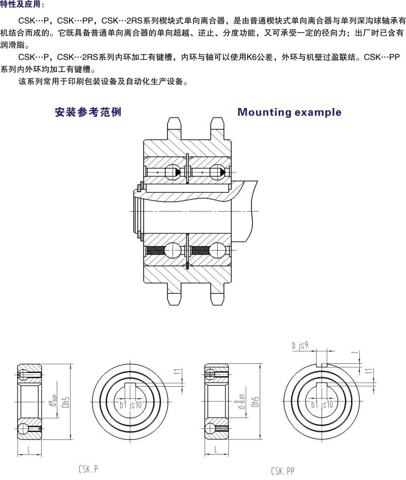 CSK系列楔塊式單向離合器,是由普通楔塊式單向離合器與單列深溝球軸承有機(jī)結(jié)合而成的。