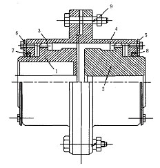 1,2.外齒軸套3,4.內(nèi)齒圈5,6.端蓋7,8.密封圈9.聯(lián)接螺栓在兩根軸端分別安裝外齒輪套1和2,并用鍵固定在各自的軸上。外齒輪分別與內(nèi)齒圈3和4嚙合。內(nèi)齒圈的法蘭再用螺栓聯(lián)接。為了減輕由于兩軸軸線傾斜和徑向位移微小誤差的影響,外齒的齒做成球面形,可以自動(dòng)調(diào)位,使齒上的載荷分布得更均勻,同時(shí)也減輕軸承的負(fù)擔(dān)。這樣,減速機(jī)低速軸的扭矩,便通過外齒套、內(nèi)齒圈、聯(lián)接螺栓、內(nèi)齒圈、外齒套傳遞至主軸。聯(lián)軸器需注入粘度大而能流動(dòng)的潤(rùn)滑油脂,對(duì)聯(lián)接齒圈的齒進(jìn)行潤(rùn)滑。有防止油脂泄漏的密封裝置,用端蓋5,6分別壓住密封圈。內(nèi)齒圈上有油孔9可以補(bǔ)充潤(rùn)滑脂,用完時(shí)用油堵擰緊。