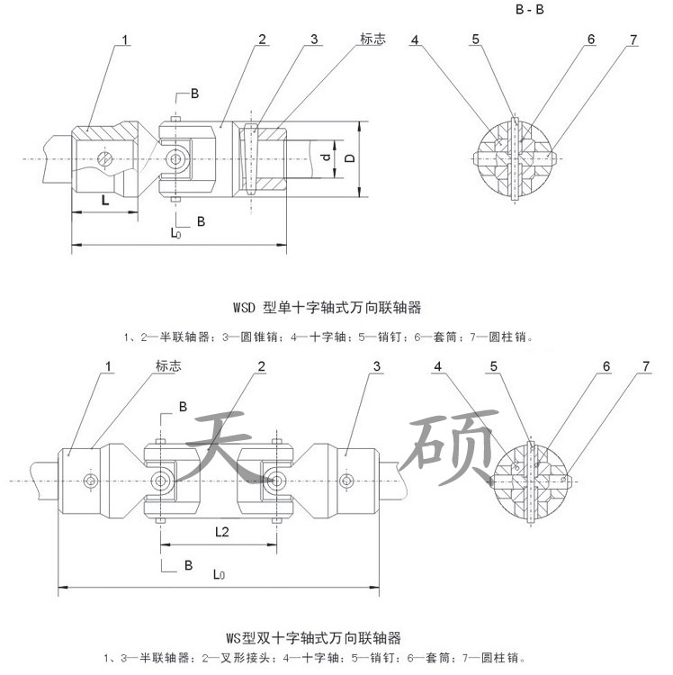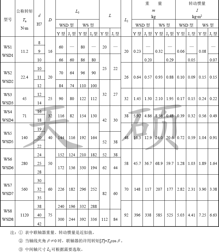 本萬(wàn)向聯(lián)軸器適用于聯(lián)接兩軸軸線夾角β≤45°的傳動(dòng)軸系;傳遞公稱轉(zhuǎn)矩11.2~1120N·m 的單十字軸萬(wàn)向聯(lián)軸器和雙十字軸萬(wàn)向聯(lián)軸器。