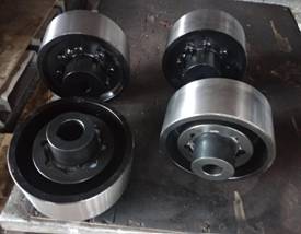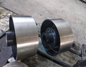 ●軸孔型式有圓柱形(Y)、圓錐形(Z)和短圓柱形(J)。軸孔和鍵槽按《聯(lián)軸器軸柱和鍵槽形式及尺寸》的規(guī)定加工。半聯(lián)軸器采用精密鑄造,鑄鐵HT20-40、鑄鋼ZG35Ⅱ,軸孔和鍵槽采用拉制成型,柱銷采用MC尼龍b制成。